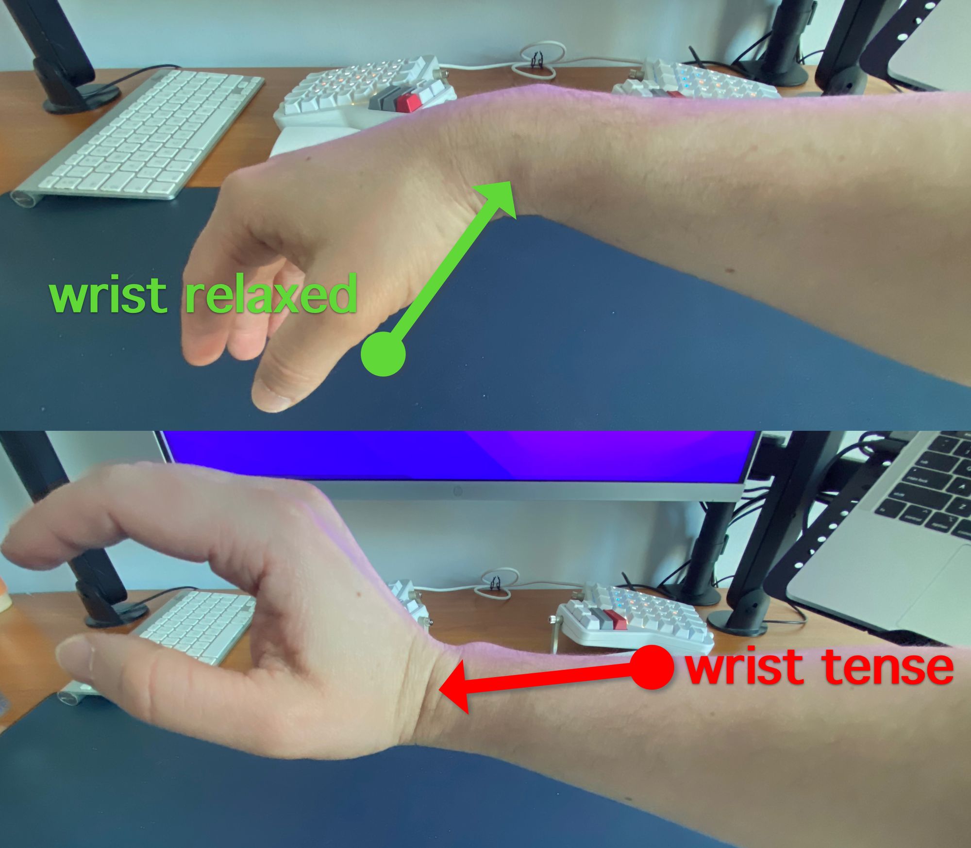 - wrist up-down position can be improved by keeping forearms up in the air instead of resting them on the table
